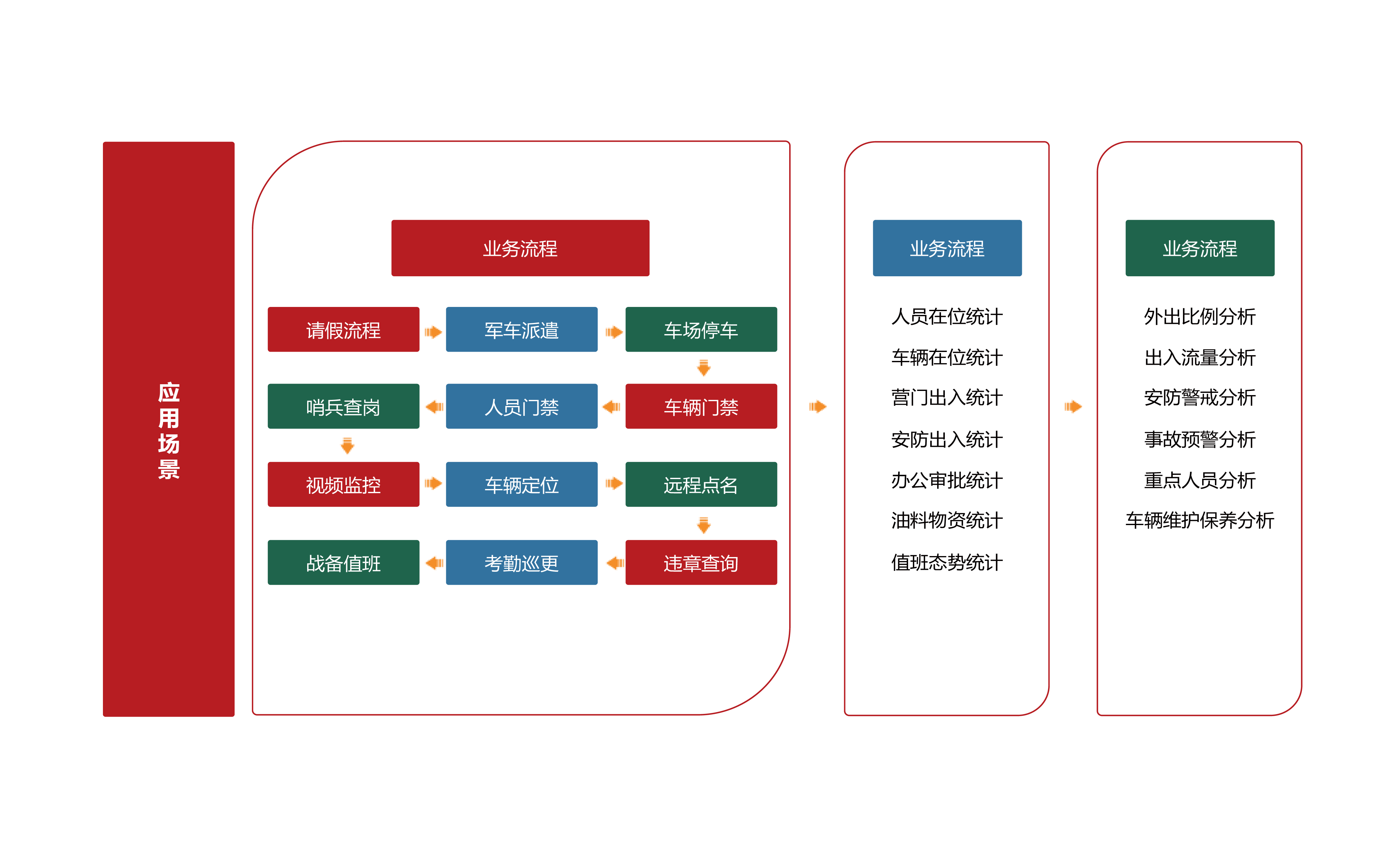 車輛門禁系統(tǒng)是營院車輛管理的重要防衛(wèi)屏障,系統(tǒng)支持多種車輛身份識別方式,結(jié)合靈活多樣的通行授權(quán)機(jī)制,實(shí)現(xiàn)車輛出入合理管控,車輛通行高效便捷。通過營門車輛通行控制、營院內(nèi)部車輛出入管理等場景,整合不同資源,打造可提交、可驗(yàn)證、可記錄、可追溯的信息化管理模式。 -