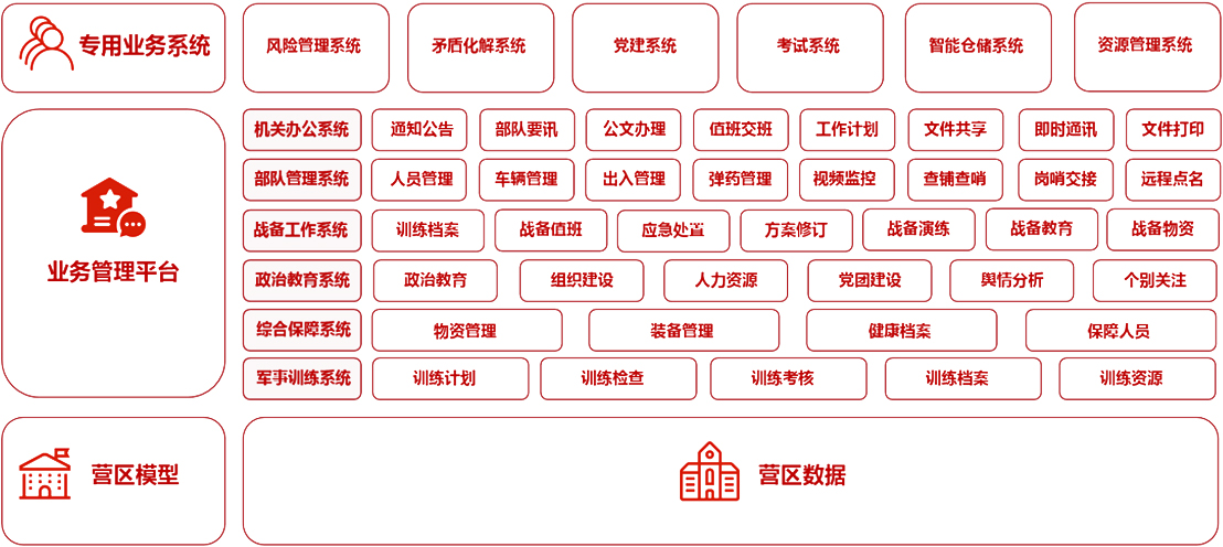 軍營專用業(yè)務(wù)系統(tǒng)包含軍營風(fēng)險(xiǎn)管理系統(tǒng)和矛盾化解系統(tǒng)。